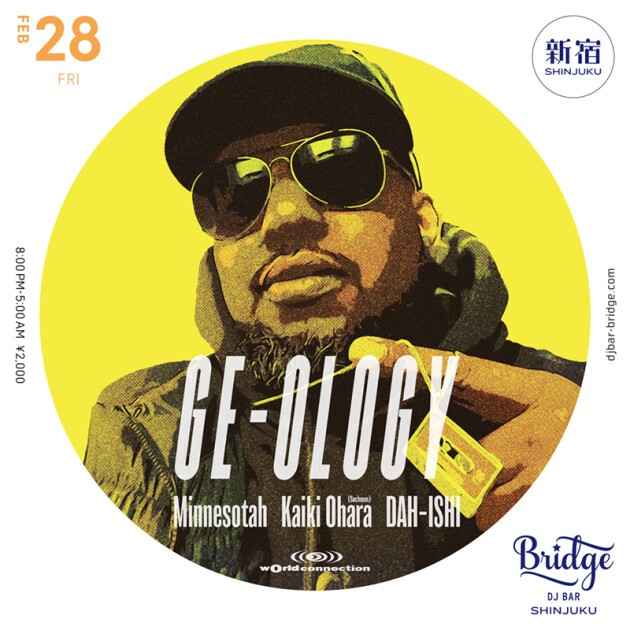 ボルチモアのハウス・レジェンドBasement Boysとのコラボレーションも行い、その後Mos Def、De La Soul、Tupac Shakur等と共に活動し、多彩な才能を発揮してきたGE-OLOGYが新宿Bridgeに再び上陸する。90年代のアンダーグラウンド・ヒップホップシーンを起点とし、近年ハウス/ディスコへと舵を切りRDCにも招聘されている。