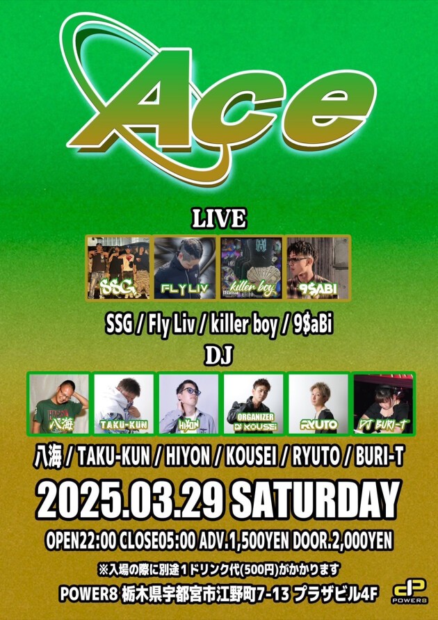 『Ace』 ◆ LIVE SSG Fly Liv killer boy 9$aBi ◆DJs 八海 TAKU-KUN HIYON KOUSEI RYUTO BURI-T