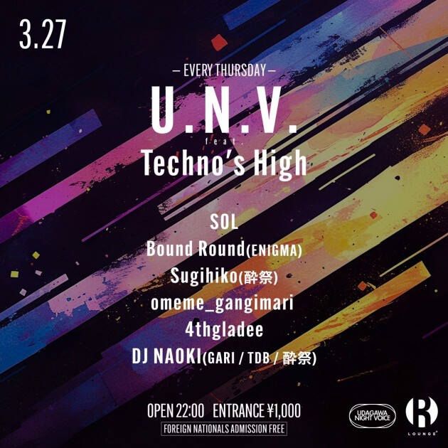 UDAGAWA NIGHT VOICE (U.N.V.), a night party every Thursday.