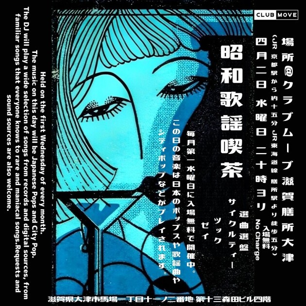 Held on the first Wednesday of every month, admission is free.The music on this day will be Japanese pop and city pop.