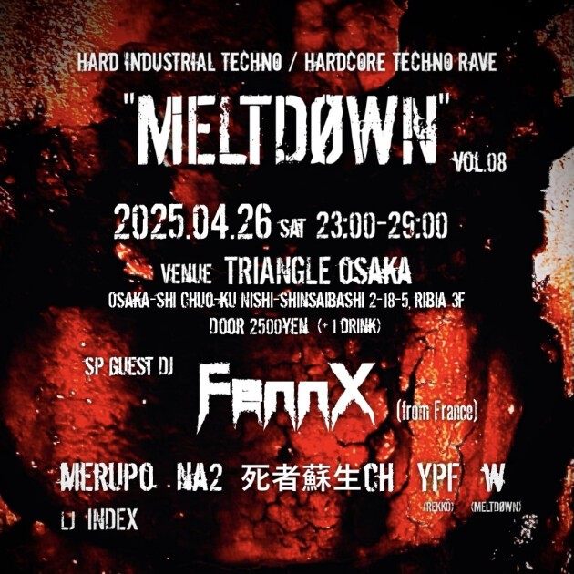 インダストリアルサウンドを基調としたHard Techno / Hardcore Techno Rave "MELTDØWN"。
