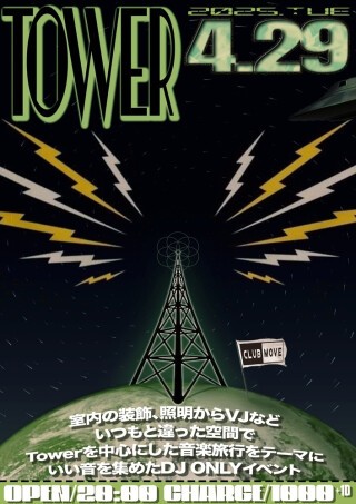 室内の装飾、照明からVJなど、いつもと違った空間でTowerを中心にした音楽旅行をテーマに、いい音を集めDJ ONLYイベントを開催。