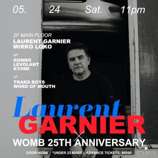 フランスのテクノ・パイオニア、ロラン・ガルニエ。WOMB には2006年の DJ MARKY & FRIENDS の出演以来なんと18年ぶりの帰還決定!!!
