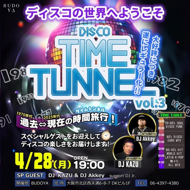 前回、前々回と大好評のDiscoTimeMachineが、皆様のおかげで遂にレギュラー化!