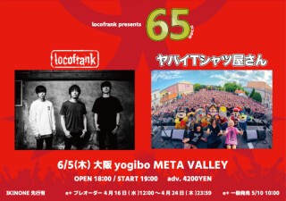 locofrank ヤバイTシャツ屋さん e + プレオーダー 4/16(水)12:00~4/24(木)23:59 一般発売 5/10(土)10:00~ お申し込みはこちら https://eplus.jp/sf/detail/4302280001-P0030001P021001?P1=0175