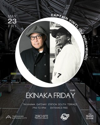 駅で▷(PLAY)」をコンセプトに、金曜夜に高輪ゲートウェイ駅構内で開催される全10回のシリーズDJイベント。建築家・隈研吾が設計を手がけた駅舎の中、電車が真下を駆け抜ける唯一無二のロケーションで、飲み物片手にDJによる音楽を楽しめるイベントを開催。