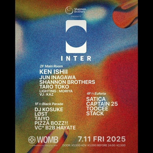 前回、¥ØU$UK€ ¥UK1MAT$U を迎え熱狂の夜を生み出した INTER が、さらなる進化を遂げて WOMB に帰還。今回は、国内外で高評価を得る実力派が集結。
