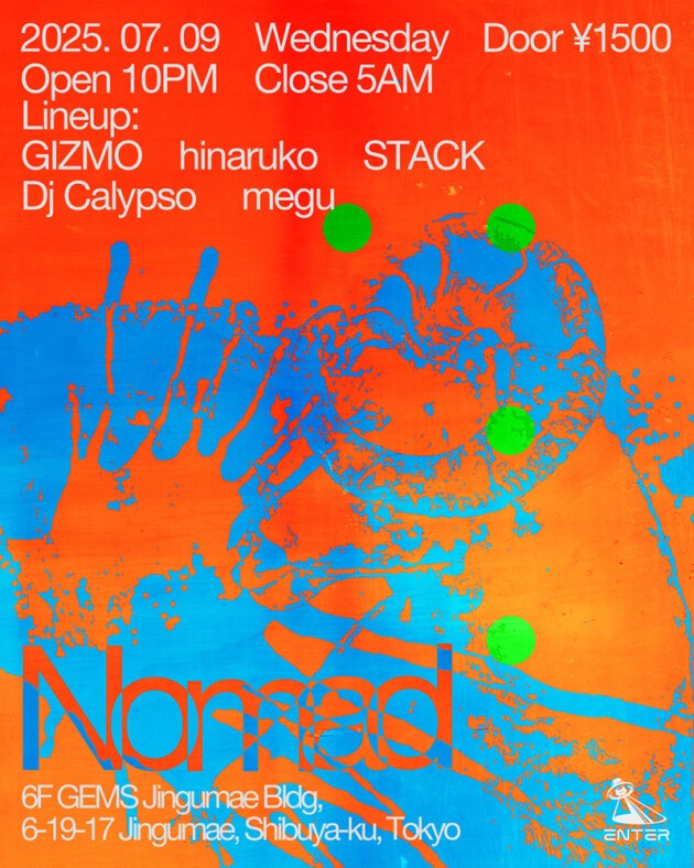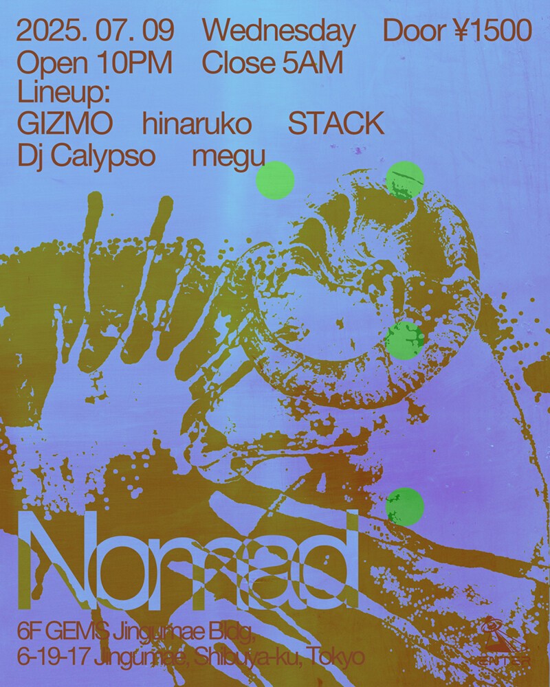 Nomadは、meguの主観で、さまざまな体験をもたらすであろうDJたちを招聘し、何にも囚われず自由な暮らしをするその言葉通り、固定概念にとらわれず、ボーダーレスに音を紡ぐことを意図している。ヤングからアダルトまで、さまざまな人々が音の波に酔いしれることになるだろう。