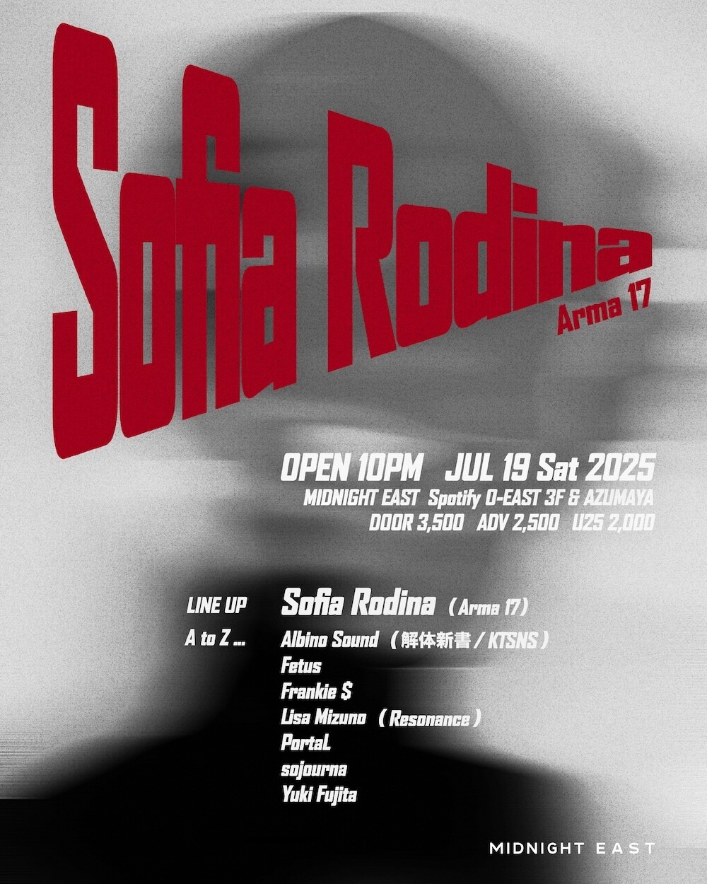 ZAIKO: https://midnighteast.zaiko.io/e/sofia-rodina-arma17