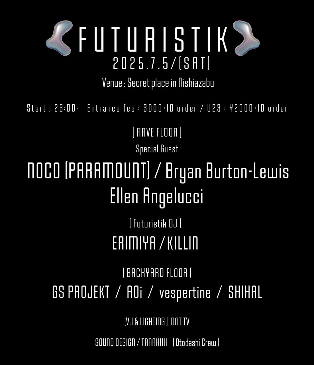 ※ シークレット開催により会場は、オーガナイザー、出演者、関係者に直接問い合わせ願います。@futuristik.tokyo