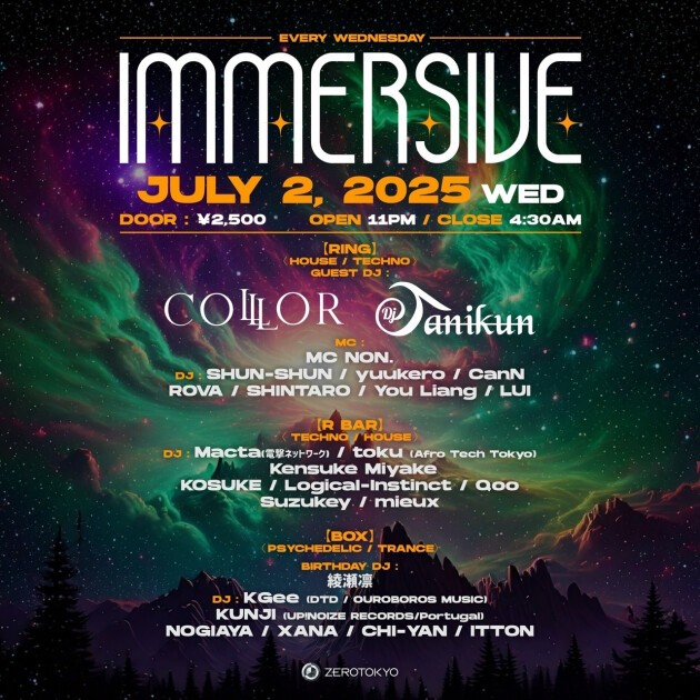 RING、R BARはHOUSE、TECHNO、BOXではPSYCHEDELIC、TRANCEのジャンルにて、シーンで活躍するアーティストがラインナップ。