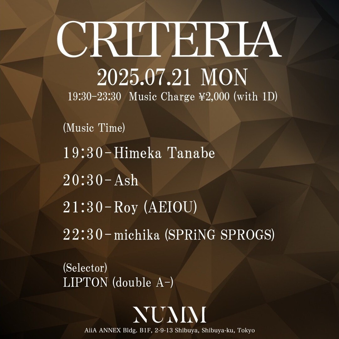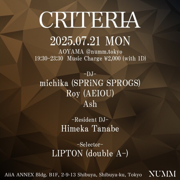 「CRITERIA」とは音楽の楽しみ方の基準をストイックに追求していくパーティー。