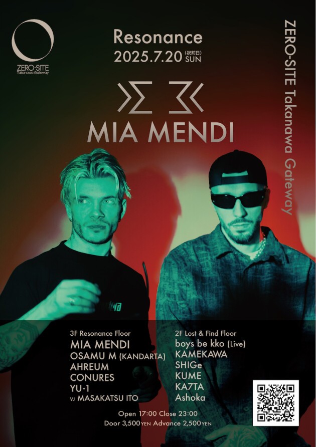 記念すべき初回のスペシャルゲストには人気レーベルSpeciesの主催にしてMelodic Technoシーンで大きな注目を集めるマンチェスター出身のデュオMia Mendiが登場。ドイツの名門WatergateやYotto主催の人気レーベルOdd One Outからもリリースを重ね、2024年にはTh;enとのコラボレーション “Collapsing Sky”が大ヒット。Rafael CeratoやPavel Petrovといった現在のIndie DanceシーンをリードするDJ達からも強い支持を得るライジングスターが遂に初来日公演を行う。