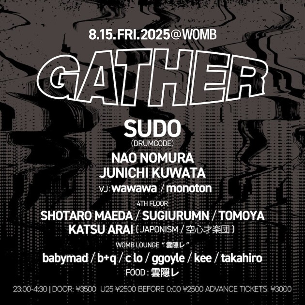 迎え撃つのは、大阪テクノシーンの最前線を走り続ける NAO NOMURA と JUNICHI KUWATA。確かなキャリアと感性が交錯する、唯一無二のラインナップが実現。
