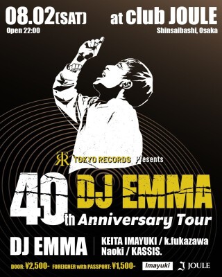 KING OF HOUSE、DJ EMMA。 国内外のクラブシーンをリードし続けるレジェンドが、自身のDJ40周年を祝うツアーを開催! 深夜の夜空のような熱気と興奮をお楽しみください。 多幸感溢れる朝を共に迎えましょう!