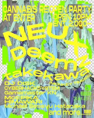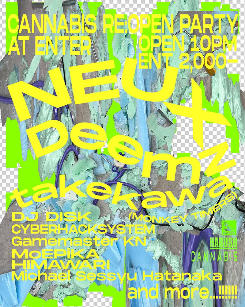 時を同じくして、先日移転に伴い一時クローズした原宿を代表する老舗セレクトショップCANNABISが8月2日にリニューアルオープン。リニューアル前夜、NEUXをフィーチャリングしたCANNABIS RE-OPEN PARTYを開催。