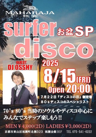 70's,80's当時のソウルやディスコ中心に皆でステップを楽しんで下さい!サーファーディスコスペシャルバージョンDJ OSHHY登場!