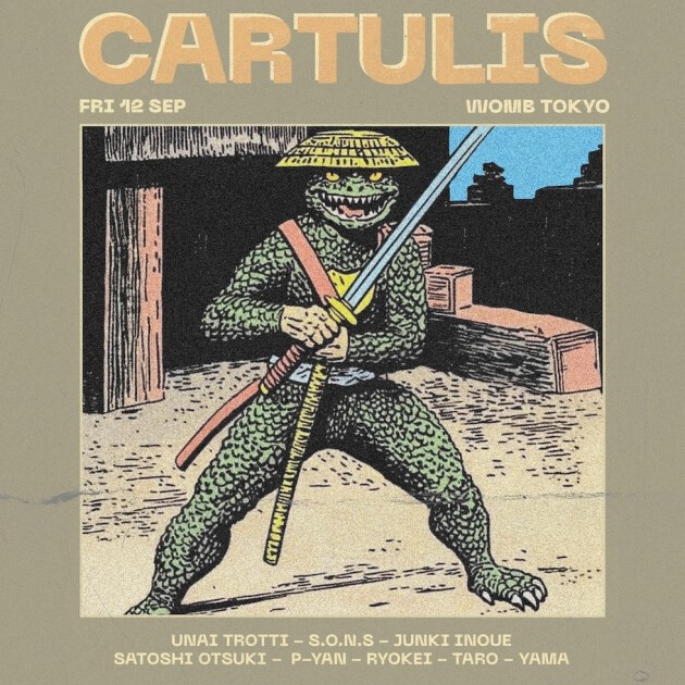 イギリスを拠点に 15 年以上に渡り活動する純愛の音楽マラソン集団、Cartulis が 9 月 12 日 Womb の一晩をテイクオーバーする。始動した 2009 年より飾り気やエゴを持たず、サウンドシステムとダンスフロアのクオリティを最優先してきたレーベル / コレクティブ / パーティである。彼らの音楽への純粋な気持ちは 15 年たった現在、ロンドンのみならず世界各地に大量のヘッズを生み出している。