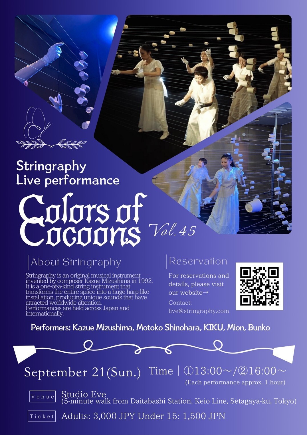 2025年9月21日(日)13:00(日本時間)より開催される「繭の色」と題したストリングラフィ・ライブパフォーマンスに、ぜひお越しください。