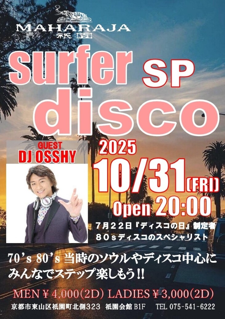 【MAHARAJA祇園】70's,80's当時のソウルやディスコ中心に皆でステップを楽しんで下さい!サーファーディスコスペシャルバージョンDJ OSHHY登場!