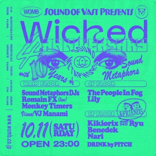 今回で4周年を迎える Wicked は、「10 Years of Sound Metaphors」と題して現在ベルリンのアンダーグラウンドシーンで最も勢いがあり、シーンを牽引している Sound Metaphors DJs と、昨年リリースした"Spacer Woman"が大ヒットを記録し10月に Sound Of Vast から"Musique de Maison EP"をリリース予定の Romain FX の2組を迎える。