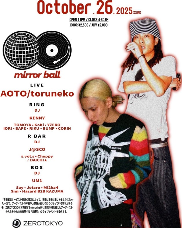 【ZAIKO】https://zerotokyo.zaiko.io/e/mirror-ball-1026
