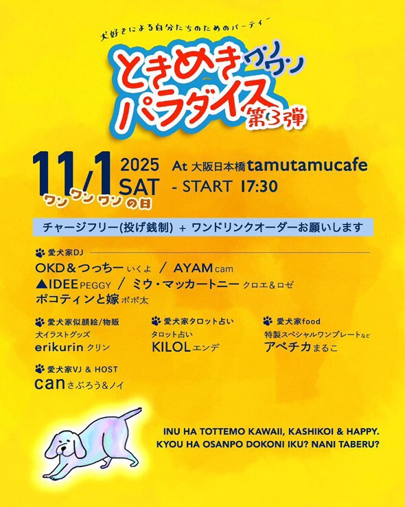 『犬好きによる自分たちのためのパーティー第3弾、今年はワンワンワンの日に開催!「ときめきワンワンパラダイス」』