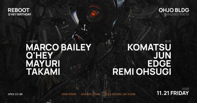 After successfully celebrating its 27th anniversary this year at the limited-time venue “ZERO-SITE Takanawa Gateway,” thrilling both longtime and new Maniac Lovers, REBOOT is set to host its first event at Shinjuku's underground new venue “Ojo Building,” welcoming longtime ally Marco Bailey. This special night will also celebrate Q'HEY's birthday, as he turns another year older in November.