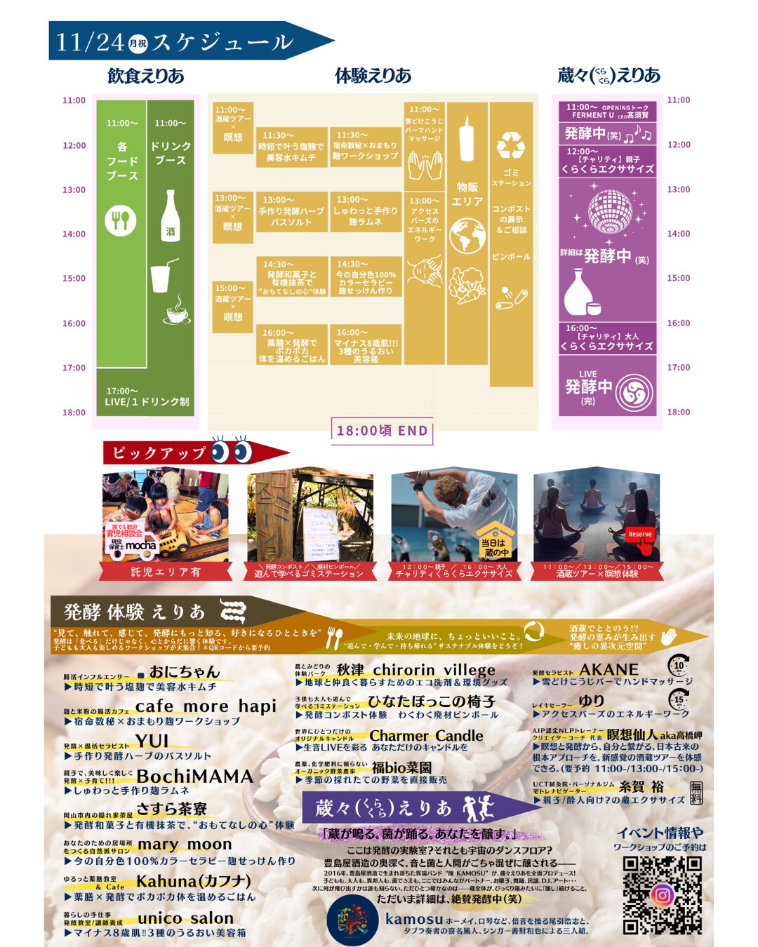 kitchen KEIJI / ABHIMANI / SAKIWAI / miyucella / ラザレ / FARE TO QE / ohana / MIKA / 福bio菜園 / music salon foggy … and more.
