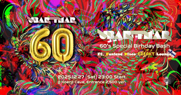 2025年最後の土曜日、12月27日は——世界に誇る奇才・UBARTMAR(うばたま)の 還暦バースデー を祝う“UBARTMAR 60s Birthday Bash ft. FUNLAND DISCO Lounge” を開催!