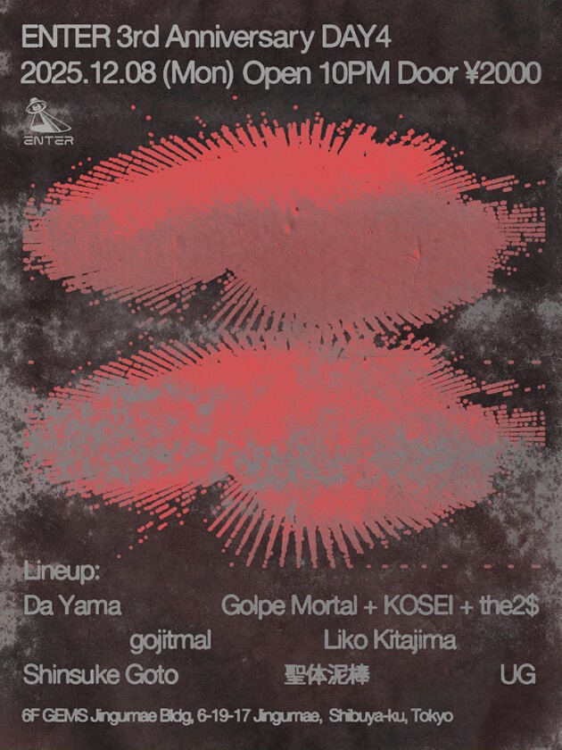 2022年12月15日にオープンしたENTER SHIBUYA。この度、3周年を祝した2週間に及ぶ9つのアニバーサリーパーティを開催する。記念すべきDAY4は多様なヴァニューで活躍するテクノシーンの要人が集結。