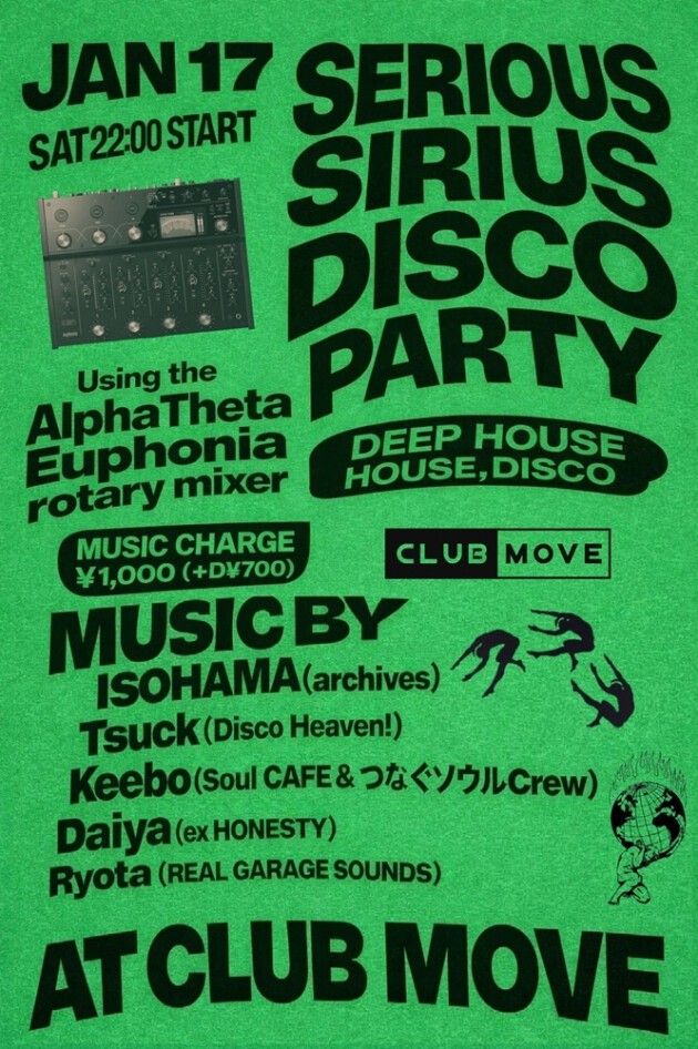 This day will be a four-on-the-floor event with record-only DJs. Look forward to some different sounds thanks to AlphaTheta's euphonia rotary mixer!