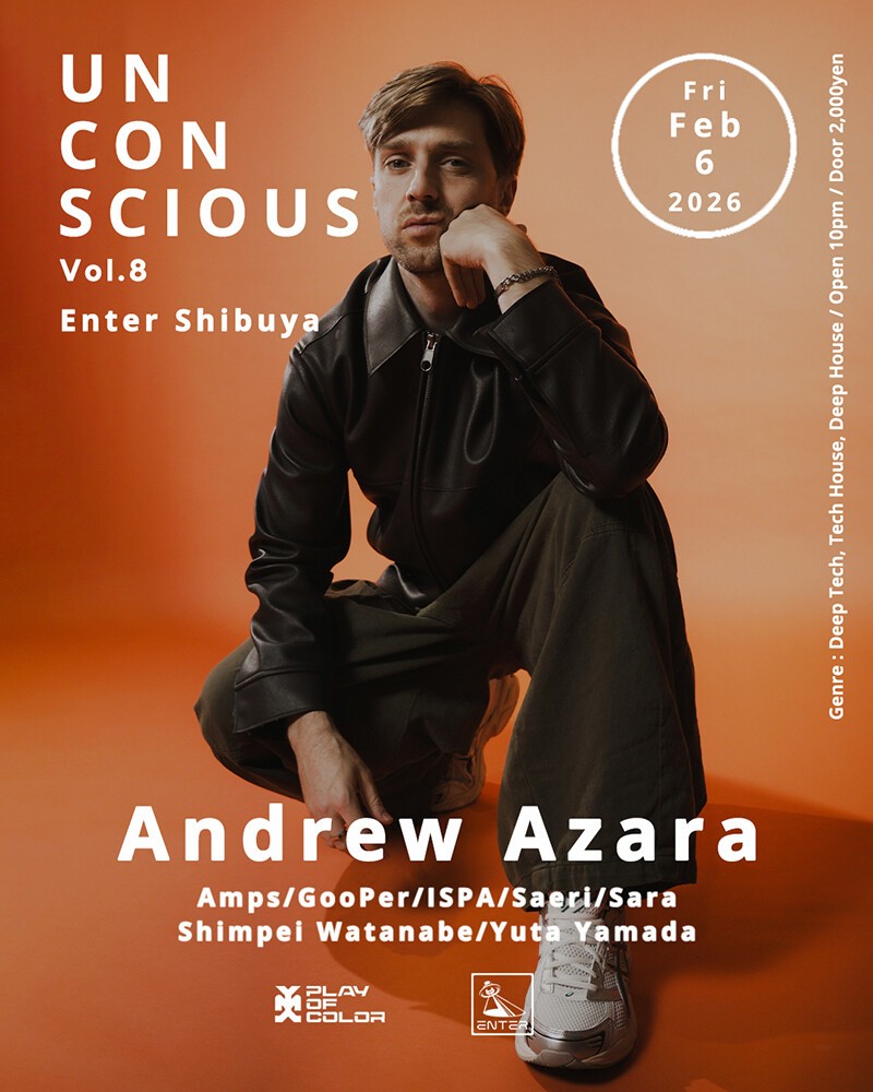 これまでKolter、Vitess、Robbie Doherty、RUZE、THEOS、Dennis Quin、Michel De Heyなど、実績あるアーティストからアップカミングなDJまで幅広く招聘し、海外DJからもサポートを受ける楽曲を多数リリースしてきた、日本発のディープテック/テックハウスレーベル〈Play Of Color〉が主催するパーティUNCONSCIOUSが、第8回目の開催を迎える。
