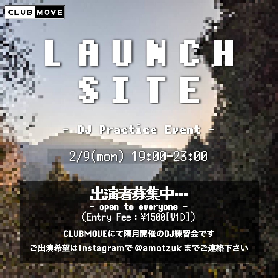 LAUNCH SITE is a practice-based event where you can practice DJing and live performances. It is open to a wide range of participants, from beginners to those who want to deepen their skills. Our goal is to create a space where individuals can not only improve their skills but also share their favorite music. (Even those who have never DJed before are welcome. We provide practice time and can teach you the basic operations. In addition to DJing, you can also practice machine live performances, etc.) If you wish to perform, please contact us on Instagram @amotzuk.