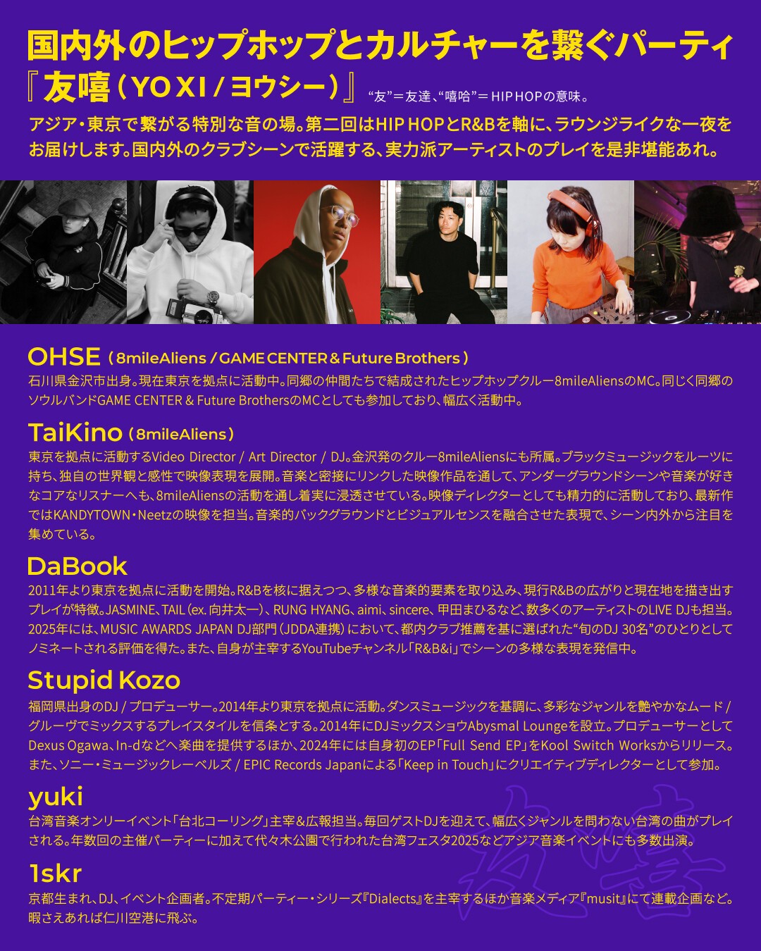 国内外のヒップホップとカルチャーを繋ぐパーティ『友嘻(YO XI / ヨウシー)』