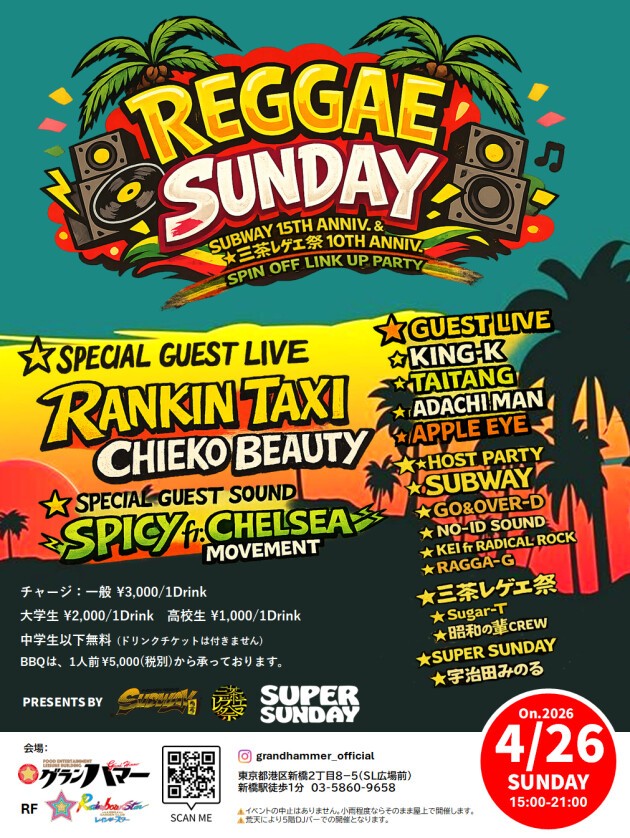 三茶レゲエ祭10TH ANNIV. × SUBWAY 15TH ANNIV. × SUPER SUNDAY