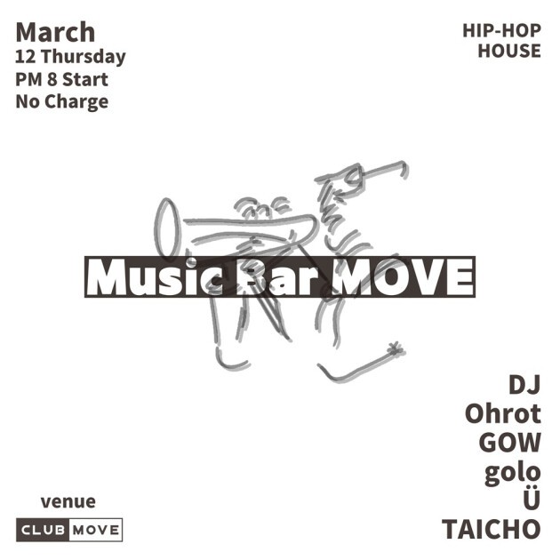DJ BAR営業のこの日はMOVE界隈の様々なメンバーがプレイします。