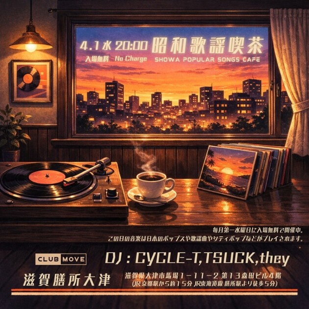 The DJ will play a wide selection of songs from records and digital sources, from familiar songs that everyone knows to rare and maniacal songs.Requests and sound sources are also welcome.