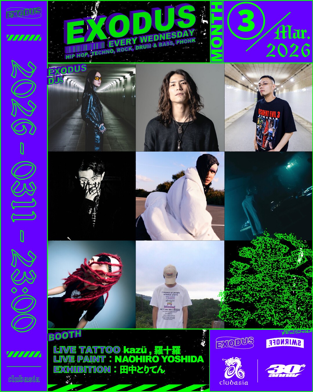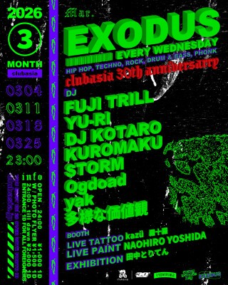 30周年を迎え空間とSOUNDが強化された、新たなclubasia 3月の"EXODUS"は要チェック。