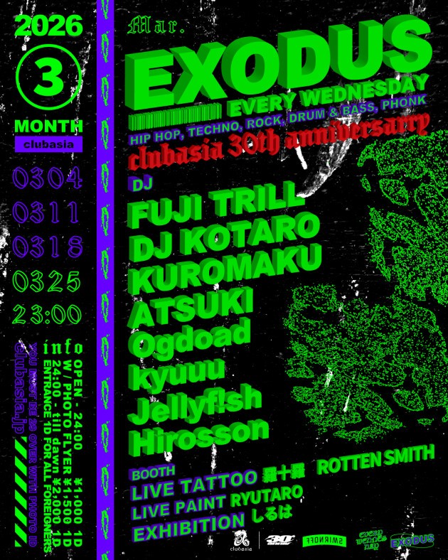 30周年を迎え空間とSOUNDが強化された、新たなclubasia 3月の"EXODUS"は要チェック。