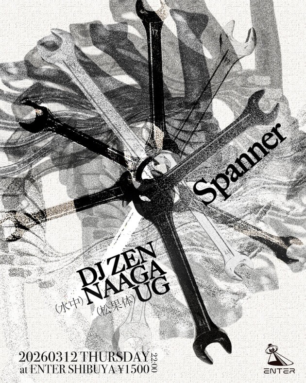 えん、BABEL、UMBRAをオーガナイズし、地下パーティや野外パーティ等錚々たる出演歴をもつDJ ZEN、岡山倉敷より水中を主催するNAAGA、ディープテクノパーティ松果体主宰のUGが出演。平日木曜、サイケデリックでダビーなテクノミュージックが反響し合う一夜。