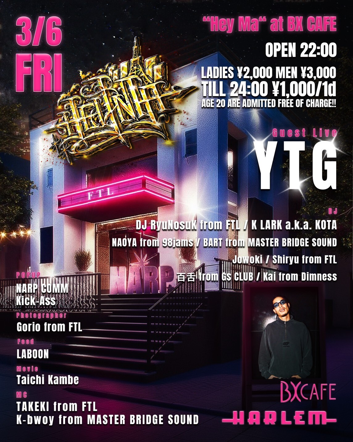 DJ: DJ RyuNosuk from FTL, K LARK a.k.a. KOTA, NAOYA from 98jams, BART from MASTER BRIDGE SOUND, Jowoki, Shiryu from FTL, 百舌 from G$ CLUB, Kai from Dimness