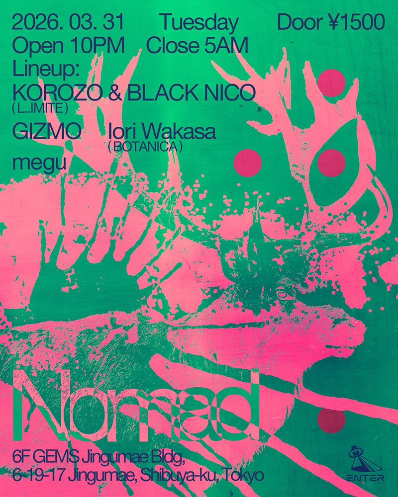 Nomadは、meguの主観で、さまざまな体験をもたらすであろうDJたちを招聘し、何にも囚われず自由な暮らしをするその言葉通り、固定概念にとらわれず、ボーダーレスに音を紡ぐことを意図している。ヤングからアダルトまで、さまざまな人々が音の波に酔いしれることになるだろう。