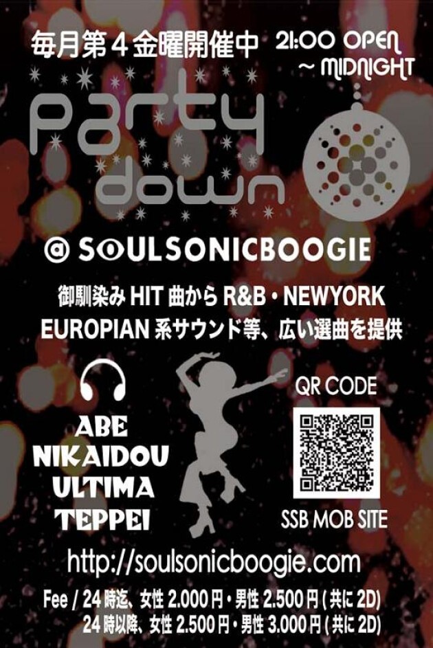 毎月第4金曜日開催。DJ-ABE&NIKAIDOをメインに御なじみのHIT曲からR&B/N,Y/EUROPIAN系まで幅広い選曲をお届けします。