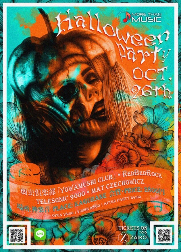 It's that time of year again. All Hallows Eve is here and all the ghouls and freaks are set to break out and turn it up. You're invited to let your inner beast run free with More Than Music and roster of horrifically dope musicians this October 26th at Kagurane in Kagurazaka.
