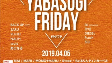 【YABASUGI FRIDAY】4/5(金)☆EVERY FRIDAY DANCE and GOOD MUSIC PARTY『YABASUGI FRIDAY』#ヤバフラ☆☆ダンサー多数出演★★