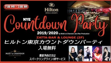 ヒルトン東京 “ZATTA NYE COUNTDOWN PARTY 2019/20” 入場無料・Free entrance(参加予約なら一杯スパークリングワイン)