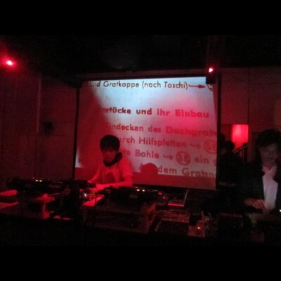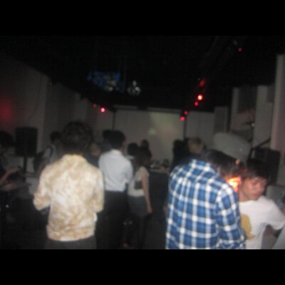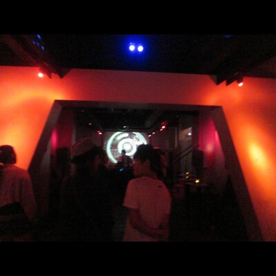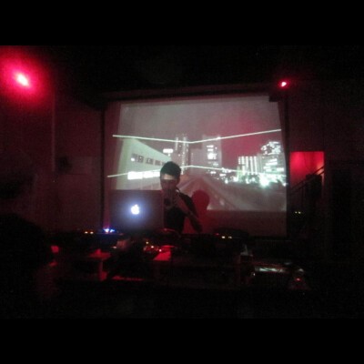 前回3月開催時には工場地帯をテーマに、様々な工場地帯写真が至る所に貼り巡らせ、音は機械的音楽、VJ陣達による