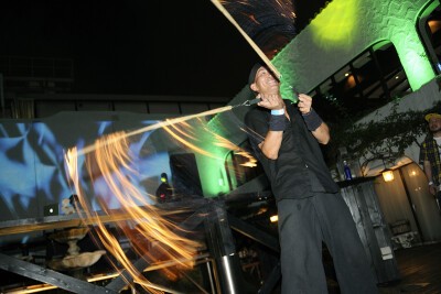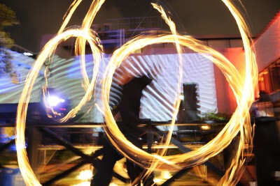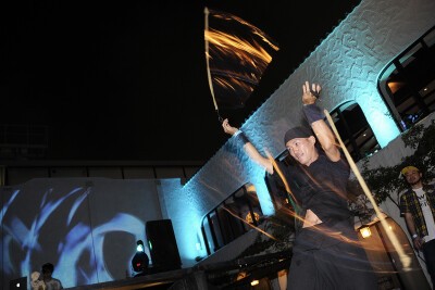 いまだ、決して「良い」とは言えない状況が続くミナミのど真ん中・アメリカ村に位置しながら、海外リゾートを思わせる程に洗練された会場では、Trance・Techno・House・EDMといった「幅広く良質な音楽」が溢れ、満ちゆく月をより一層美しく輝かせていた。また、会場に常設されているプロジェクターは約5500ルーメンもの光量を備えており、この日は現実と夢を往来しているかのような魅惑的な映像が巨大な壁一面に映し出されていた。他にも、本格的なファイヤーショーがあったり、SPAMやタコライスといった料理を楽しんだり、ゆったりとしたソファで寛いだりと、集まった人々は思い思いのスタイルで月夜のパーティに舌鼓を打ち、ココがドコなのかをつい忘れてしまうくらいの贅沢な一夜を楽しんだ。
