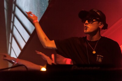 NGHTMREの次にRNSOMが登場。NGHTMREと同学年で同じ音楽学校を卒業し、その卒業生達で作った13th Gradeのメンバーでもある彼。現在のLAを象徴するBASS HOUSEサウンドから、HIP HOPまで縦横無尽にコントロールし、NGHTMREからの色を変えつつ、熱気そのままにロックしていく。そしてMasayoshi Iimoriにチェンジ。ここまで明るい刺激的なTRAP SOUNDが中心だったメインフロアでの流れから、フューチャー感たっぷりのDARKで、しかしながらビートメイキングに遊びの効いた、レイドバックにもバンギンにも盛り上がれる、まさしくMasayoshi Iimoriサウンドの真骨頂を披露。